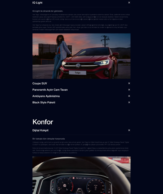 Kampanya, ikinci el, test sürüşü ve servis bölümleri için içerik hiyerarşisi sadeleştirildi. Kullanıcı akışı kısaltıldı.