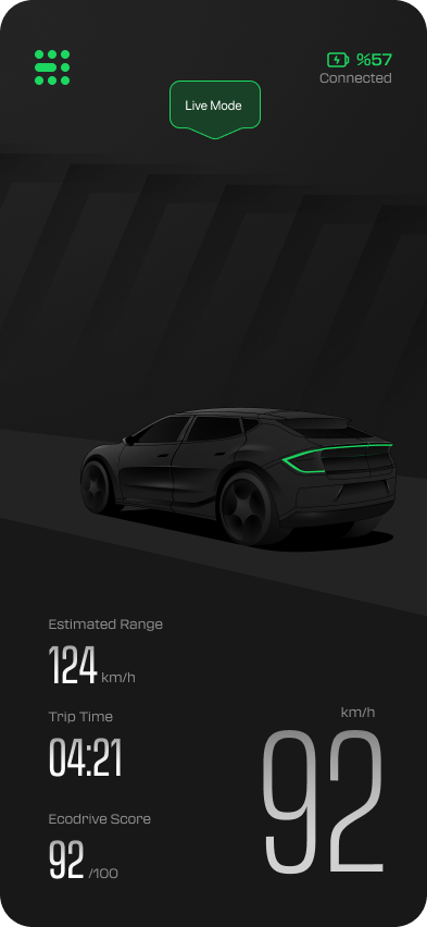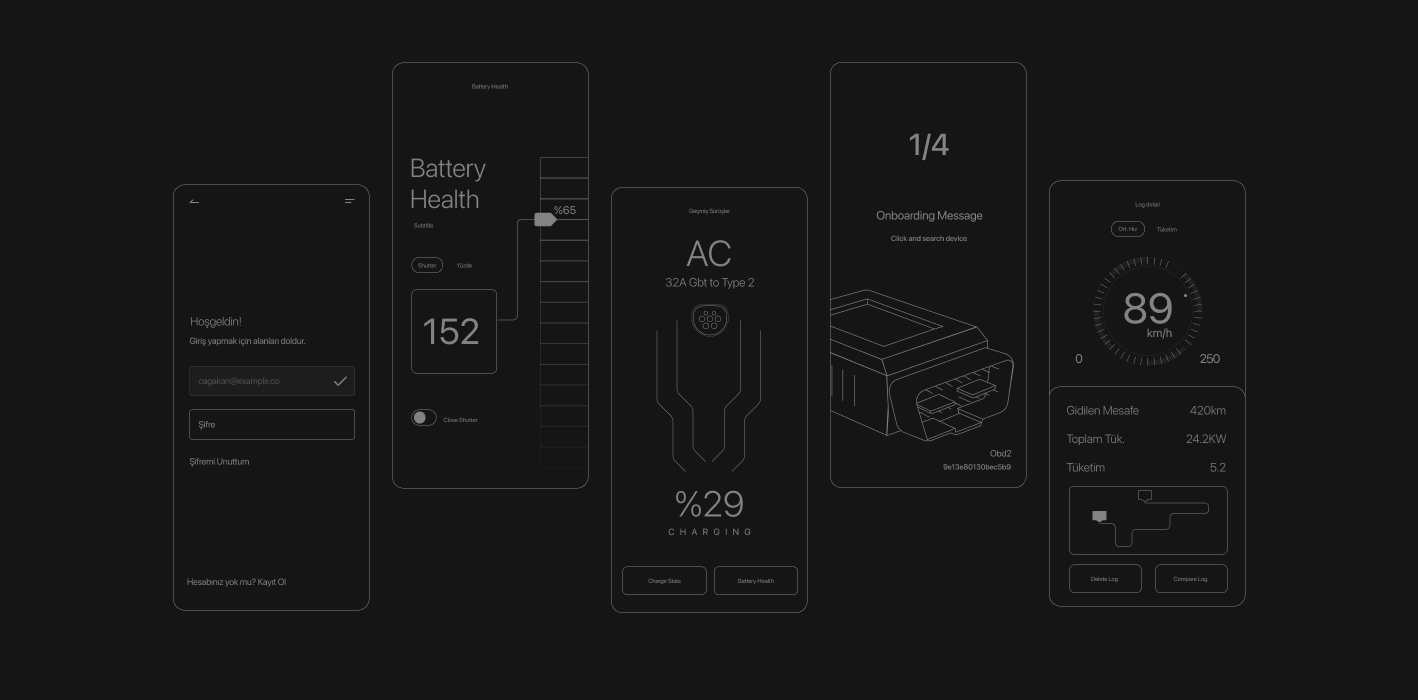 Tracky, saniye bazında güncellenen veriler üreten bir IoT sistemi olduğu için mobil arayüzün yalnızca estetik değil, davranış temelli tasarlanması gerekiyordu. Veri kartları, grafikler ve durum bileşenleri; değişim hızına uyum sağlayan bir hareket ritmiyle yeniden yapılandırıldı.