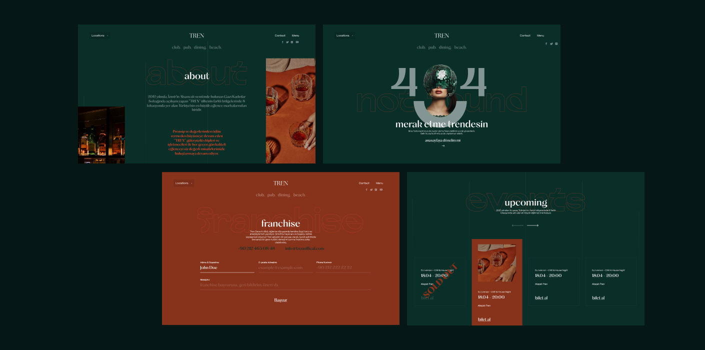 Her ekran farklı bir hikâye anlatıyor, kullanıcıyı görsel ve işitsel bir yolculuğa çıkarıyor. Sıcak pastel tonlar, Tren’in mekânlardaki enerjisini dijitalde yansıtıyor.